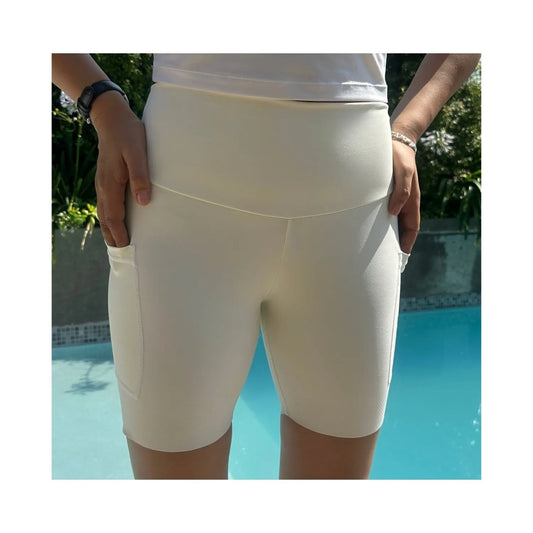 Calzas Running Cortas Con 3 Bolsillos Mujer - Beige